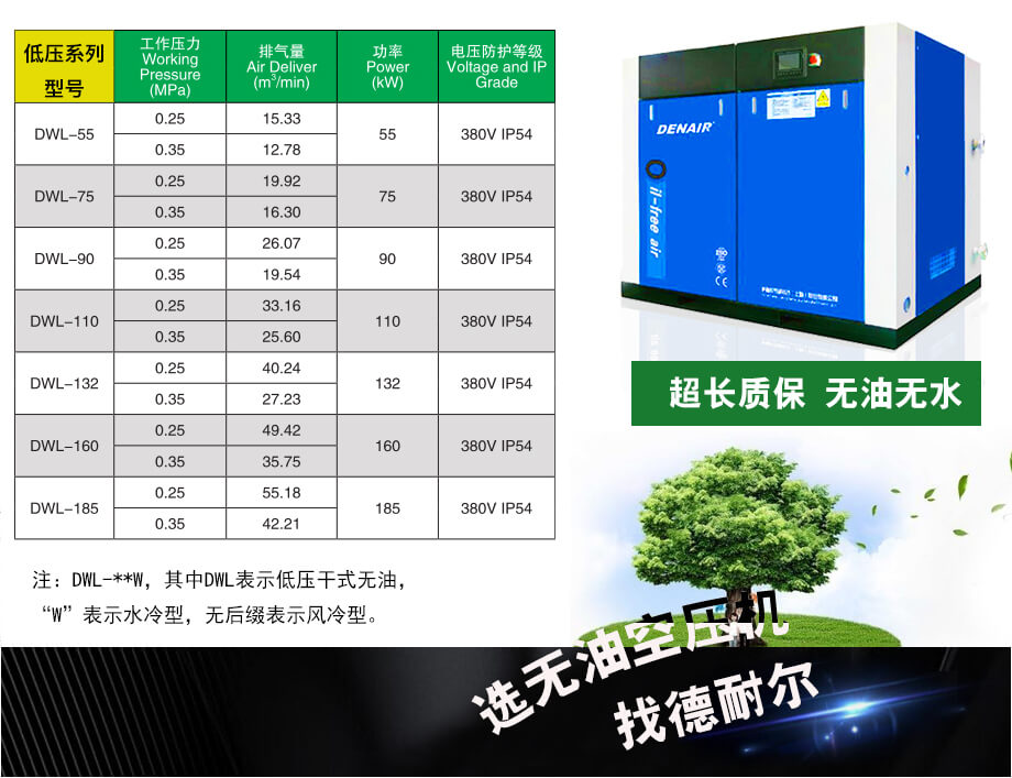 低压干式无油空压机