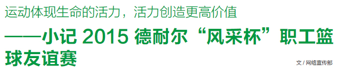2015上海德耐尔“风采杯”职工篮球友谊赛成功举办。生命在于运动,运动在于拼搏,拼搏在于激情。德耐尔人积极践行运动精神,满载着激昂斗志,一身热血,只为在篮球场上一较高低,拼的是获胜信念,搏的是团队合作。